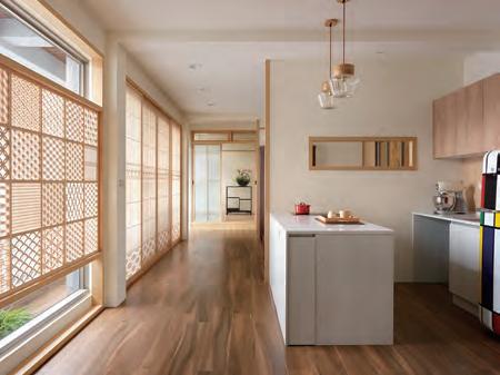 一樓和室保持著日本和室的尺度,使用日本傳統「組 子」的障子門,偏低的門樑使人低頭進入,暗喻日本人 謙虛的態度,和室的榻榻米讓室內充滿藺草香,於色、 於形、於味都呈現傳統日式空間的氛圍與樣式。