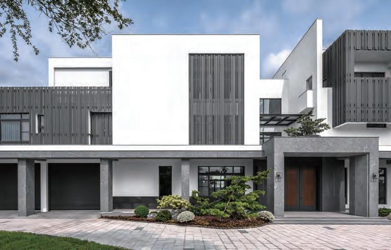 出日式懷舊感 梯間外牆選用清水模作為傳統日式斜瓦與現代金屬木紋隔柵的分界 讓日式 禪靜融入現代元素 完美呈現傳統與現代的融合