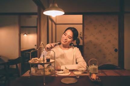 二樓泡茶室的廊道,掌握光、影、物的元素。當陽光進 入空間時,被障子門濾化,揉合出獨有的日式禪靜氛 圍,呈現出靜。逸。禪。樸。