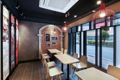 過去KFC從BA、ISP等設計調性較為強烈,強調用餐速度的設計配置,延 續至今我們依循品牌提出新定義的K2風格進行設計解構,除了將既定的 用餐區域添加溫暖(Warm)之氛圍外,亦增加空間層次定義上之用餐形 式,重視空間敞開的View-Café Bar Area與建構時尚的Kitchen High Table Bar Area,使整體的用餐客席(FOH)不僅只是用餐的機能,也是一 個能與朋友自在舒服的聊天與聚會之空間。