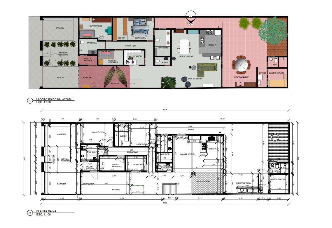 Desenvolvimento projetos de interiores para residência a ser executado, com plantas baixas, planilha de materiais e imagens 3D