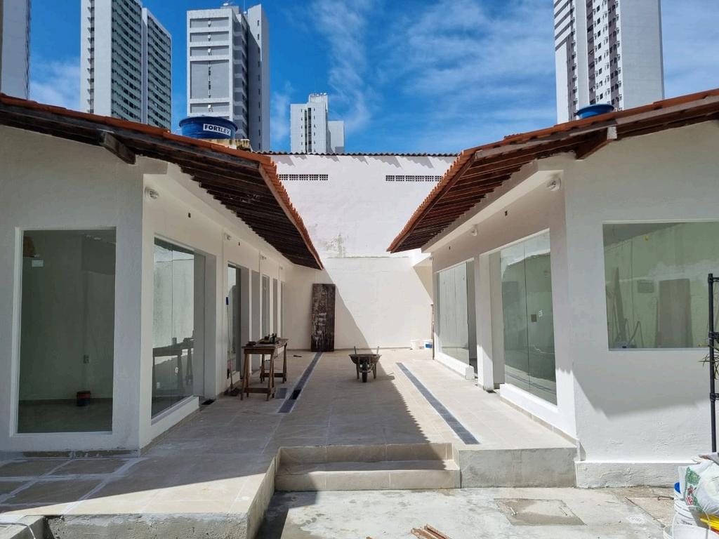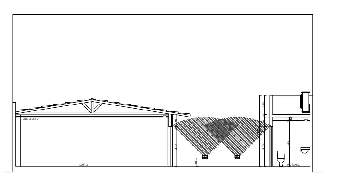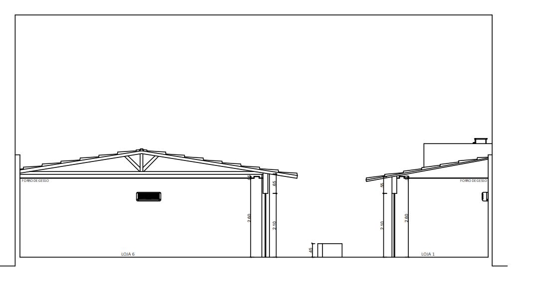 Foram criadas novas paredes de gesso acartonado para delimitar a área das lojas As vigas da fachada das lojas e o telhado também foram todos refeitos para este projeto.