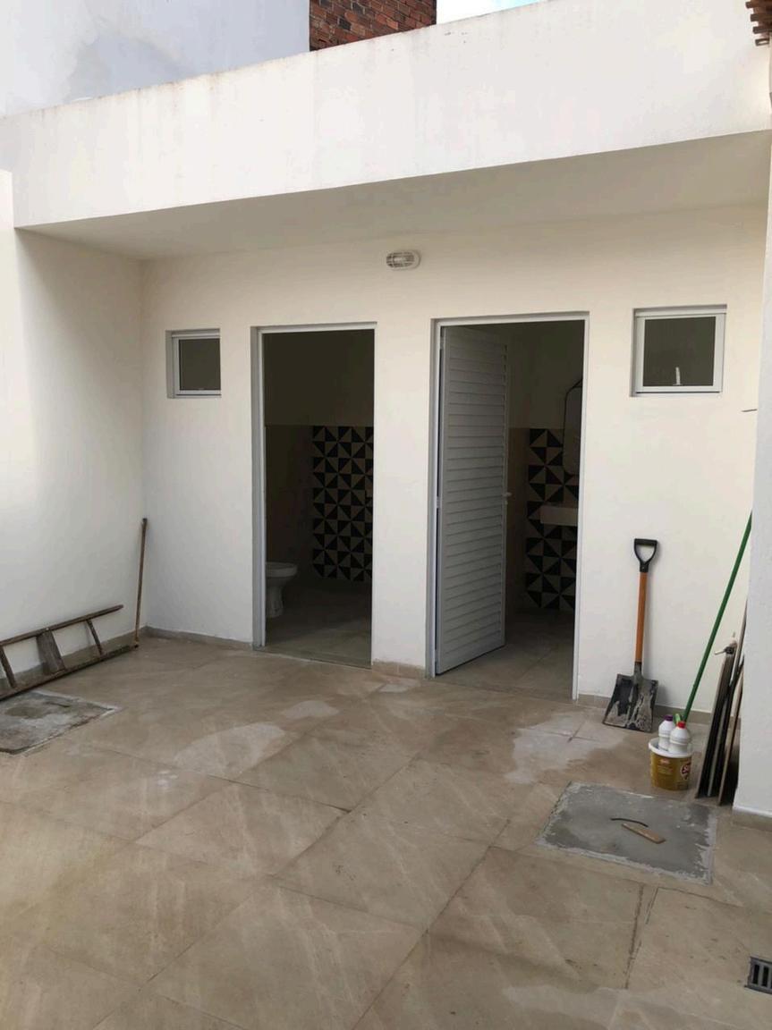 Durante a obra, os entulhos gerados pela demolição das paredes existentes viraram contrapiso para a área dde circulação de clientes.