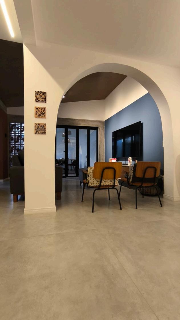 A casa ficava nos fundos de uma outra, já transformada no Café Com Dengo, que pertencia a família O desejo era ar uma nova cara e um novo uso ao imóvel. Foi assim que surgiu o projeto e uma galeria.