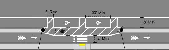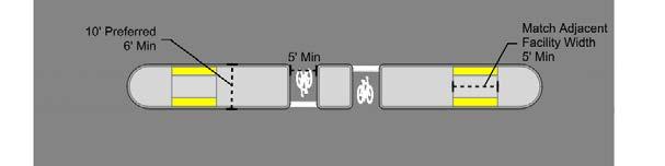 For narrower overpasses or underpasses, often less than 26' wide, space may be insufficient for dedicated bike lanes. In such cases, alternative safety measures can be implemented: