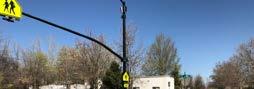 Shared use paths often cross mid block. In this case, Rectangular Rapid Flashing Beacons, Pedestrian Signals, or other signal treatments may be used in addition to advanced warning signs to prioritize path crossings.