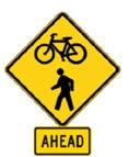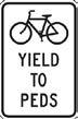 “Bicycles Yield to Pedestrians” (MUTCD R9-6) may be used to indicate pedestrian priority.
