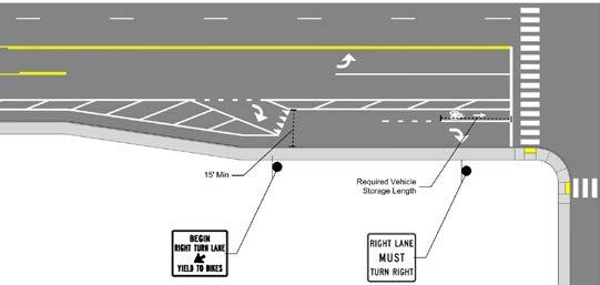 • Controlling a bicycle through movement for a bicycle lane running on the right-hand side of a rightturn lane, such as for protected bike lanes or through bike lanes