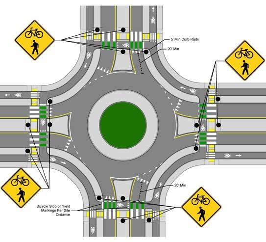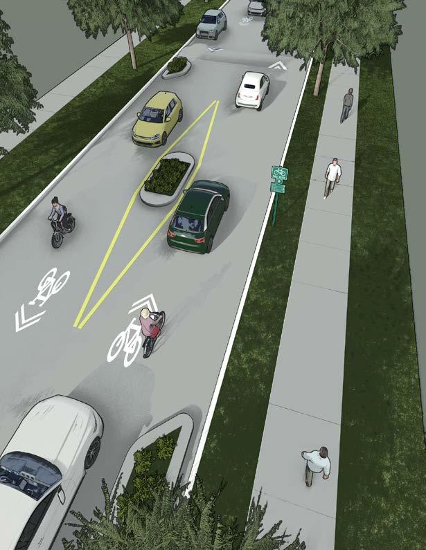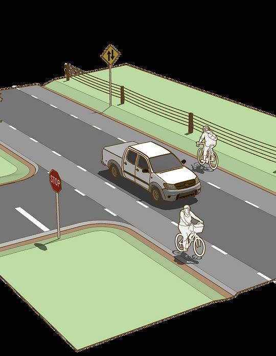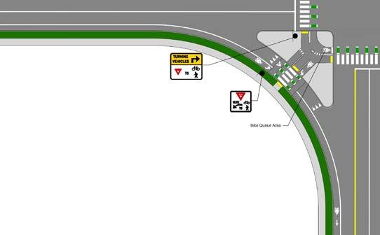• Clear Signage, Road Markings, and Active Warning Beacons can alert drivers to the presence of people biking, enhancing their visibility.