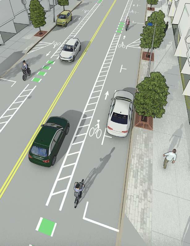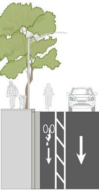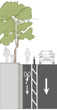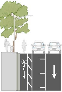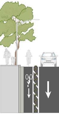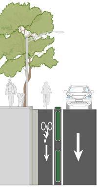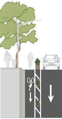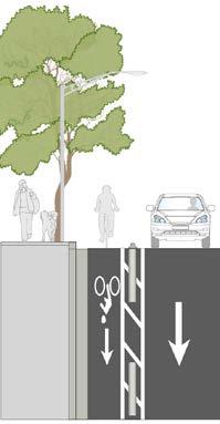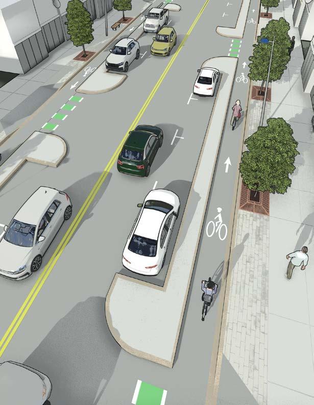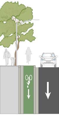 • Continuous Separated Paths for corridors with existing sidepaths, ensuring safe and seamless passage for people biking, regardless of their experience level.