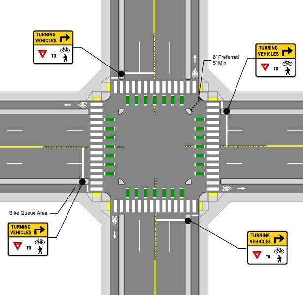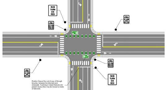 • Providing a leading or lagging bicycle interval or to make it legal for a person biking to enter the intersection during an all-pedestrian phase