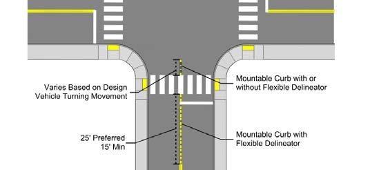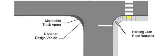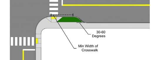 Employ small roadway corner radii to enforce turning speeds of 20 miles per hour or less. On highspeed roads, a deceleration lane may be necessary to achieve slower turning speeds.