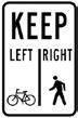 “Keep Left | Right” (MUTCD R9-7) may be used to indicate which side of the path people walking and biking should stay on.