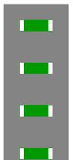 • Gap (F): The distance from the edge of the rumble strip to the edge of the rumble strip when there is a break in the pattern. Gaps are commonly used to allow bicycles to cross the rumble strip pattern and to allow turning movements at intersections and driveways.