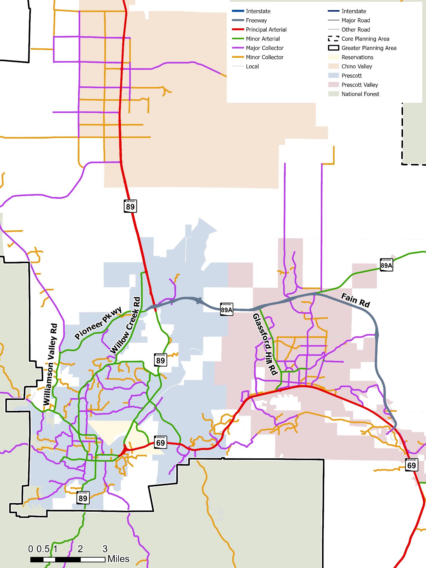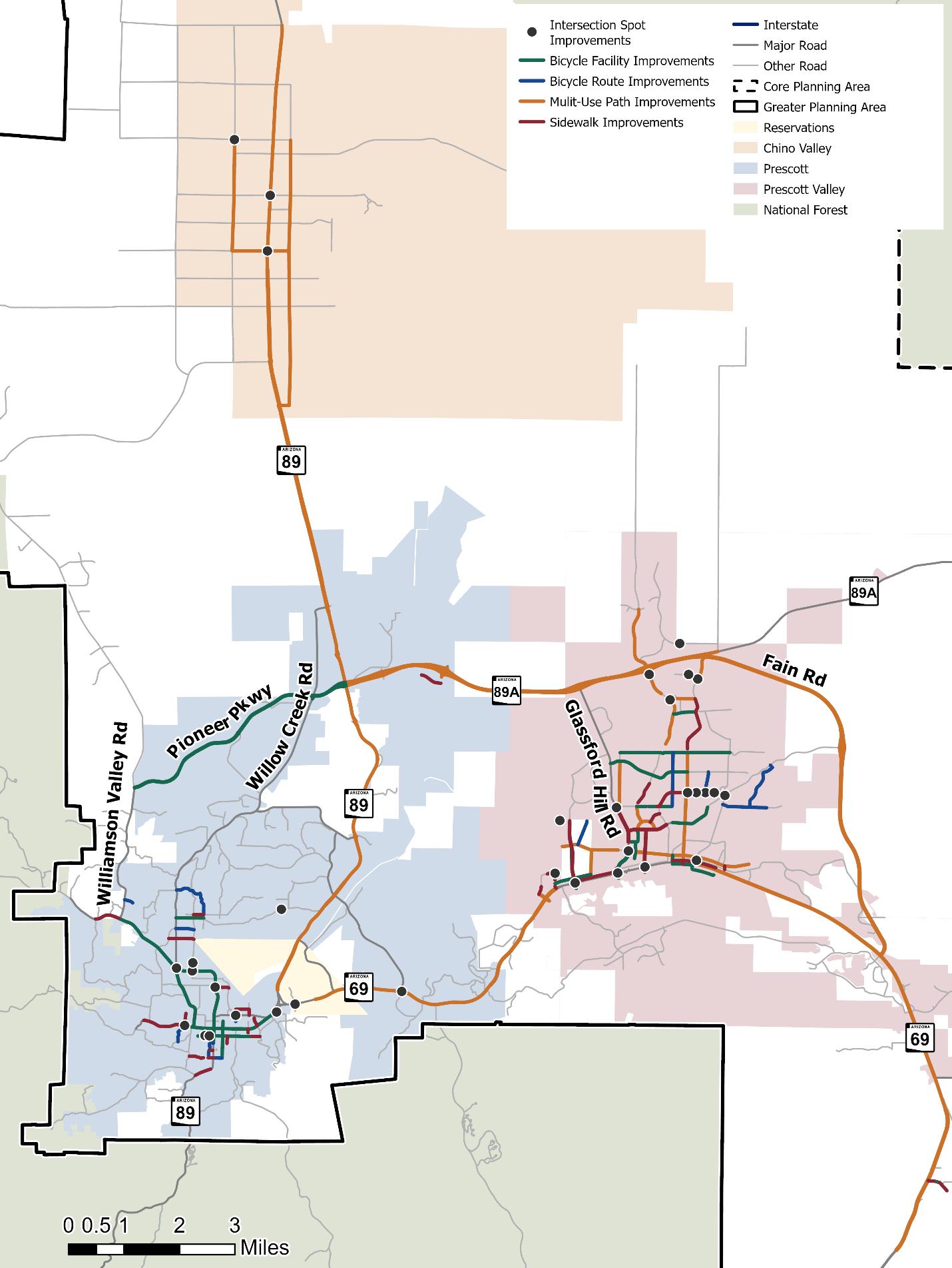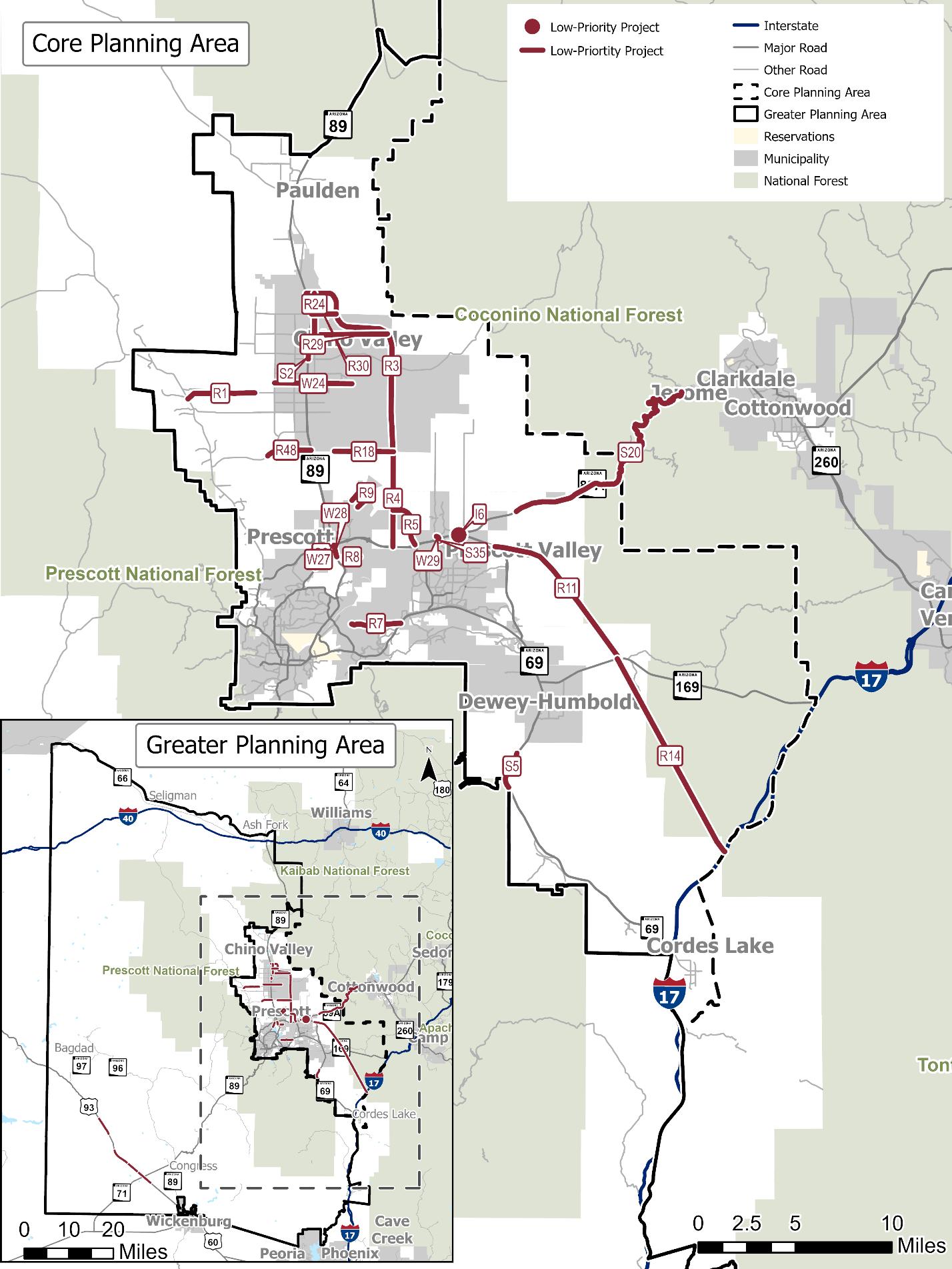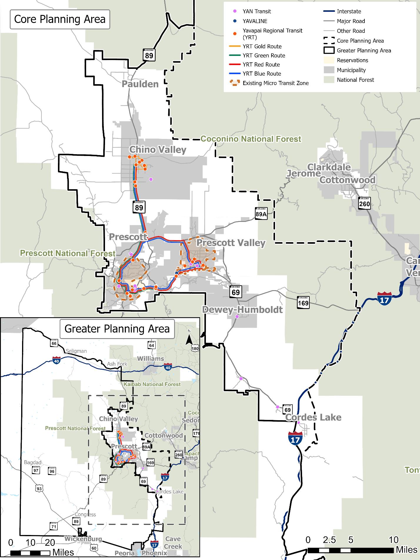 • Greater Planning Area. This area includes much of the newly added areas to the MPO boundary that encompass western and southern Yavapai County