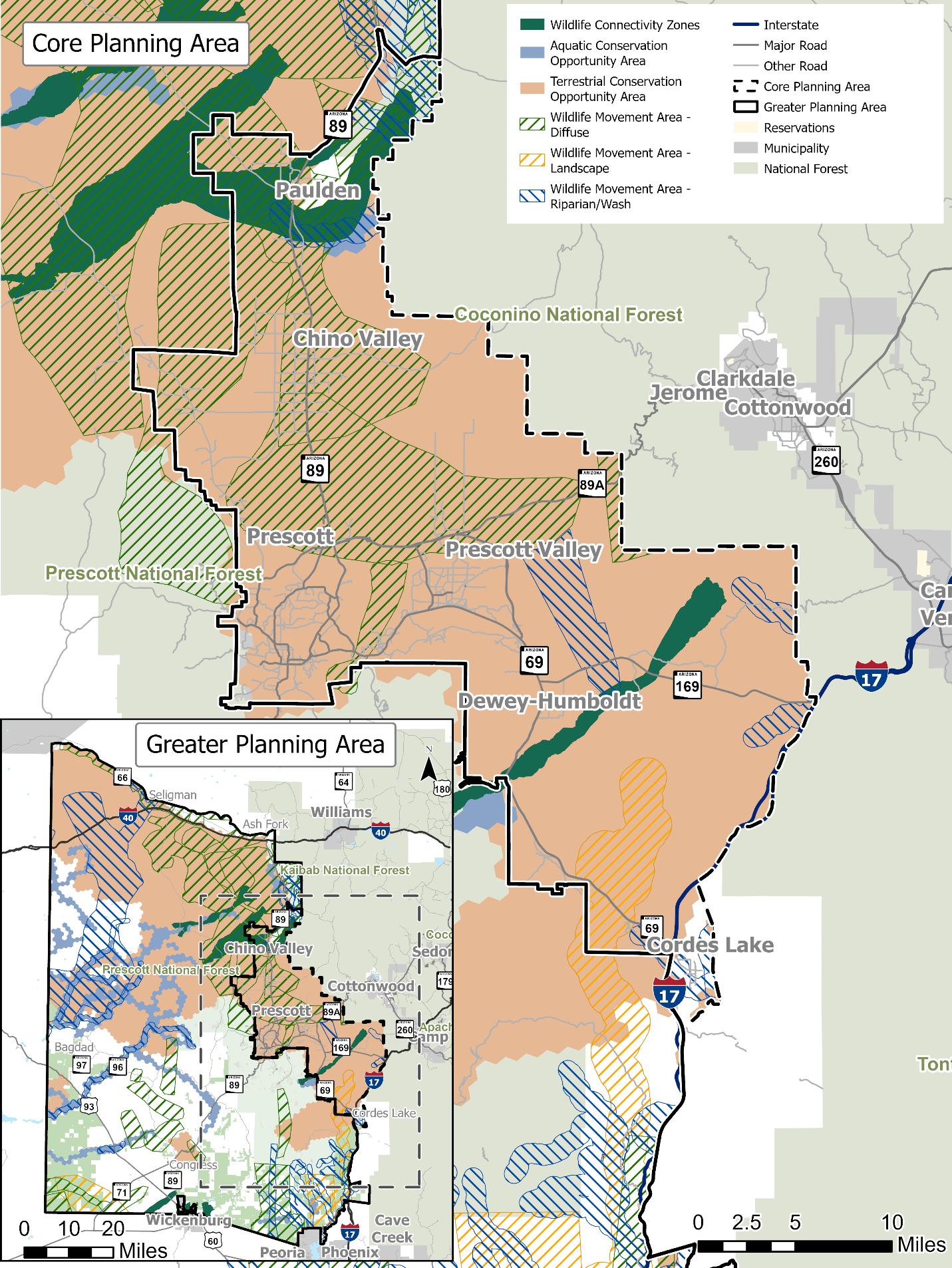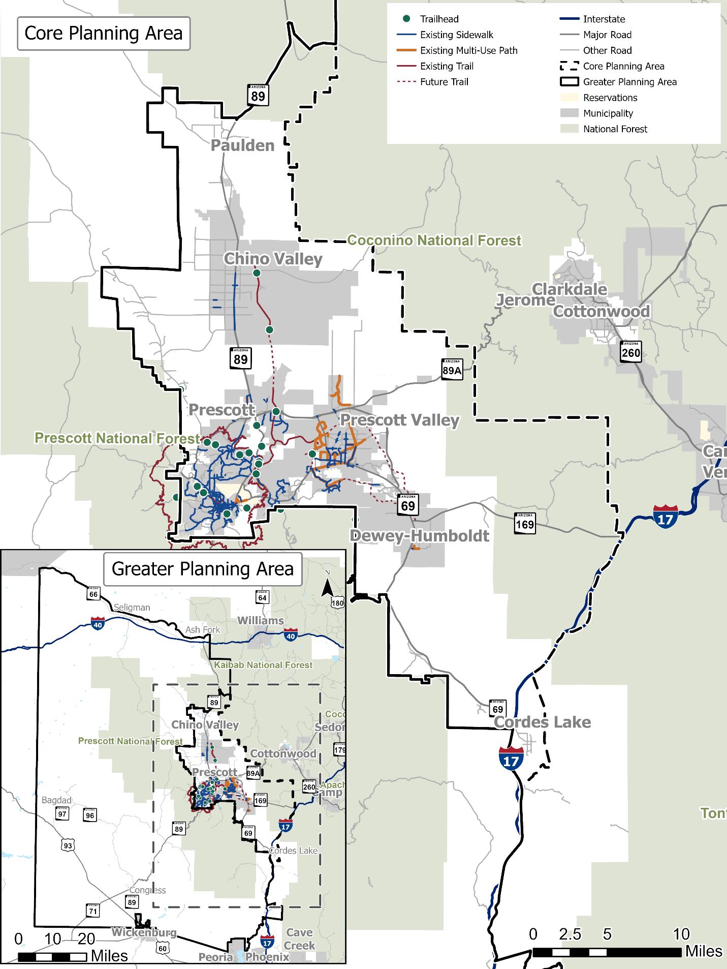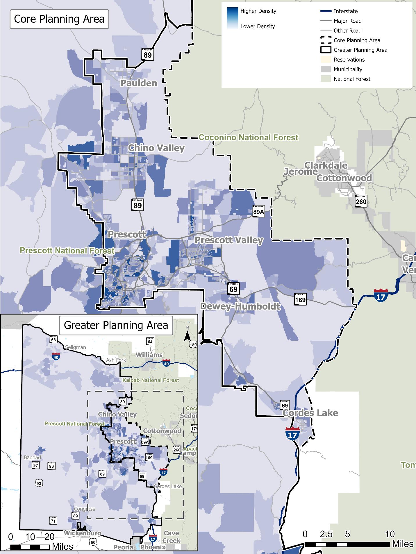 • Core Planning Area. This area includes the incorporated limits of Prescott, Prescott Valley, Chino Valley, and Dewey-Humboldt along with the more populated portions of Yavapai County adjacent to these municipalities.