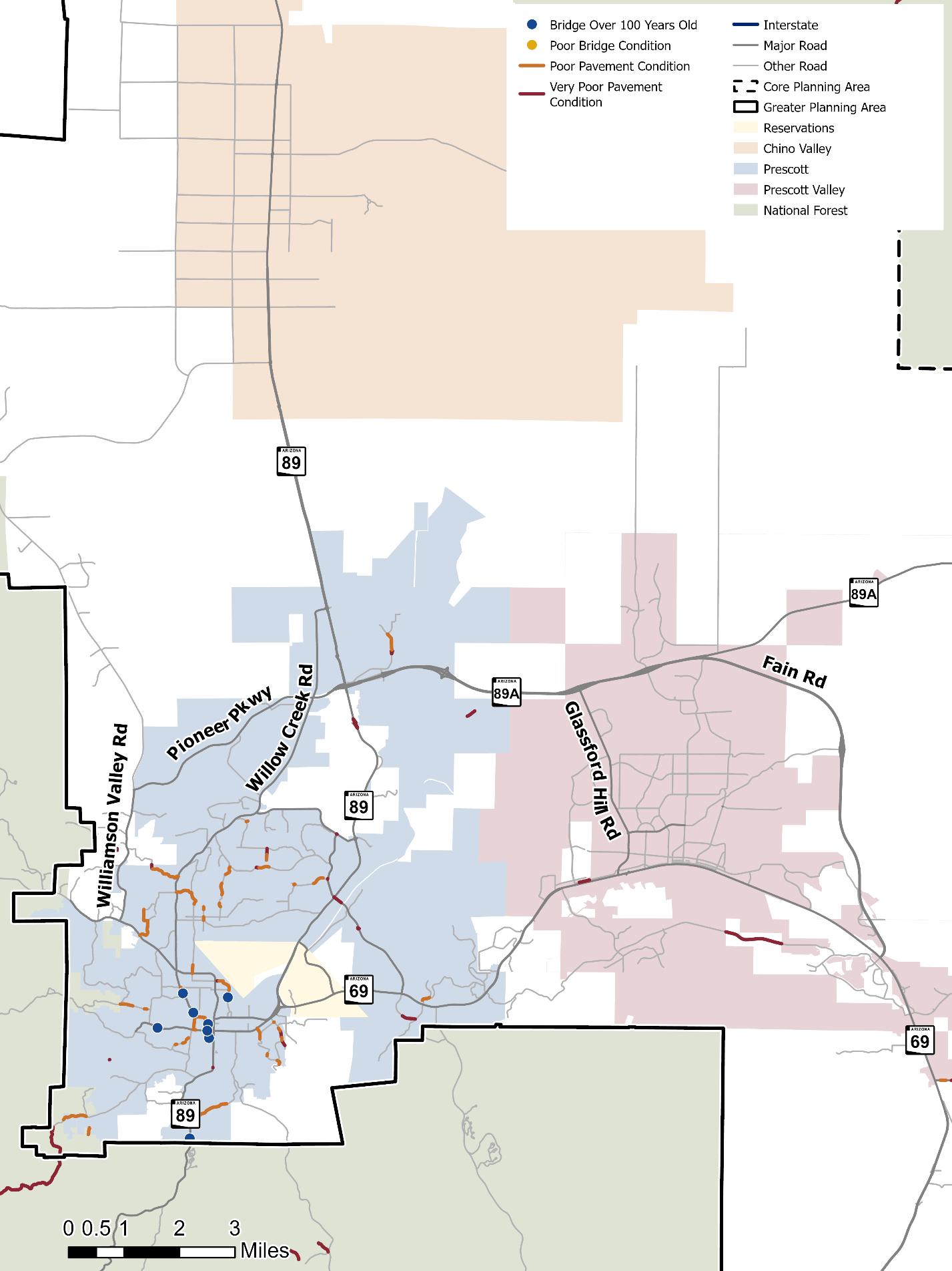 CYMPO and its member agencies will continue to ensure bridge and pavement condition is maintained throughout the region, including through the implementation of bridge projects recommended in Move 2050.