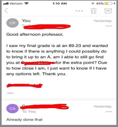 College students, in my opinion, are not customers, or entitled to their education, and teachers are not here to serve or please students. I do not believe that college students should be treated or perceived as customers nor should they be taught in an environment that breeds the ethic “the customer is always right.” In my class, a student is treated as an adult and as a team player. Students are free to discuss issues and problems as they arise with me and receive my honest, objective opinions. Students in my courses are able to communicate with me via email, by calling me at my home and/or office phone number, or through my personal and/or course web sites.