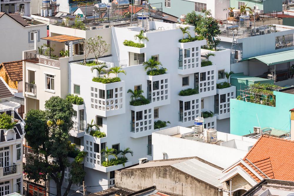 Gubahan massa bangunan ini di rancangan dengan mengatur ulang volume bagian dalam bangunan dan volume dari bagian dalam bangunan tersebut dibagi menjadi beberapa volume yang lebih kecil dan memasang volume tersebut ke perimter bangunan yang berfungsi sebagai balkon setiap unit.