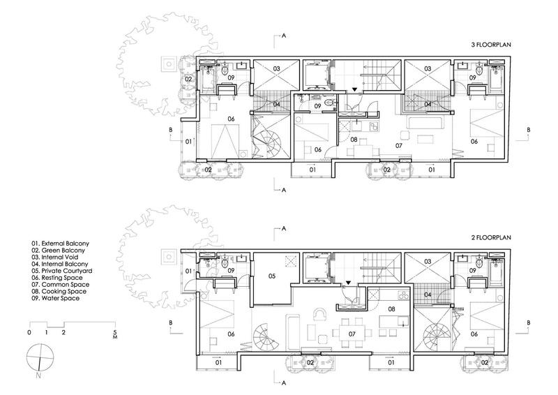 Transisi ketinggian banguanan dari tinggi ke rendah ini tidak hanya mempertahankan elemen saja, tetapi juga tetapi juga memberikan pandangan yang mengarah pada alun-alun kecil di sisi selatan. Tipologi ini berusaha untuk mengikatkan hubungan antara kawasan penduduk yang harmonis dengan kualitas rumah individu yang mencerminkan masa lalu lingkungan masyarakat yang selalu tinggal di daerah tersebut.