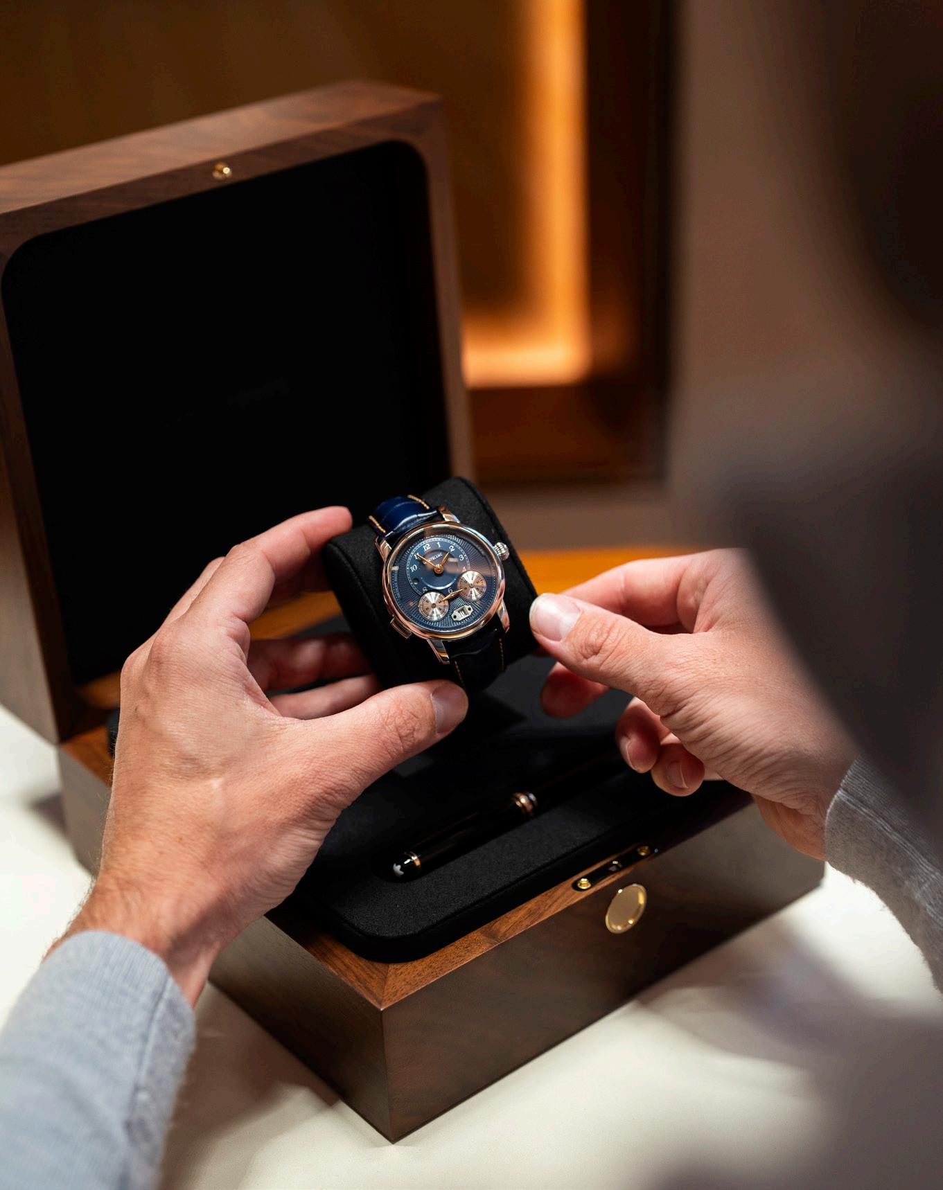 Seit seinen Anfängen verkörpert Art du Temps den Anspruch, die Eleganz und den Respekt vor dem Uhrmacherhandwerk, die das Herz der Stadt höher schlagen lassen. Dank Herrn Cédric Schiess, dessen Vision und Grosszügigkeit die Seele dieses Hauses geprägt haben, und dank seiner Fähigkeit, Tradition und Moderne zu verbinden, jeden Kunden wie einen Gast und jede Uhr wie ein Kunstwerk zu empfangen, hat sich Art Du Temps eine bemerkenswerte Identität geschaffen.
