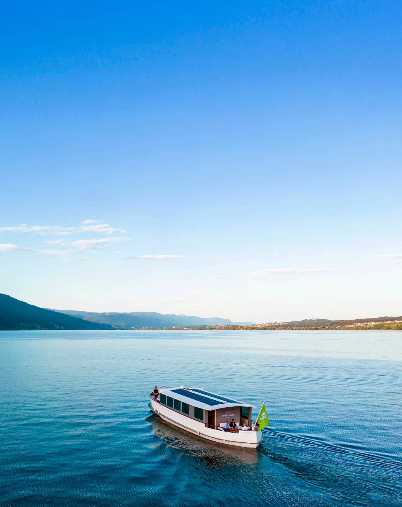 Sur l’eau tout change : lorsque l’horizon s’élargit le quotidien s’éloigne et le sentiment de sérénité rapproche les gens. Les conversations deviennent plus profondes, les rencontres plus intenses. Les expériences partagées, que ce soit un regard sur un paysage, un moment silencieux sur le pont ou un menu créé par des chefs d’exception, tissent les liens. Le lac ralentit notre rythme et nous connecte à l’essentiel. L’espace crée la relation et la relation donne du sens au temps.