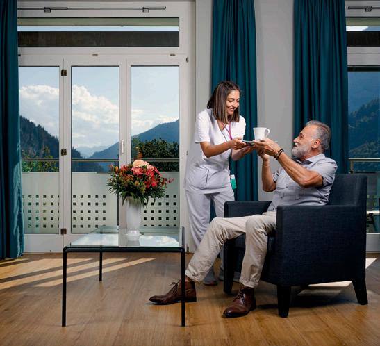 L’assiette est importante mais le lieu en luimême est essentiel au processus de régénération. Au cœur des montagnes, baignée d’un air pur, la Leukerbad Clinic met à votre disposition les célèbres eaux thermales de Leukerbad, pourvues en minéraux et bien connues pour leurs vertus curatives. Le corps se relâche, l’esprit s’apaise et le temps semble se suspendre.