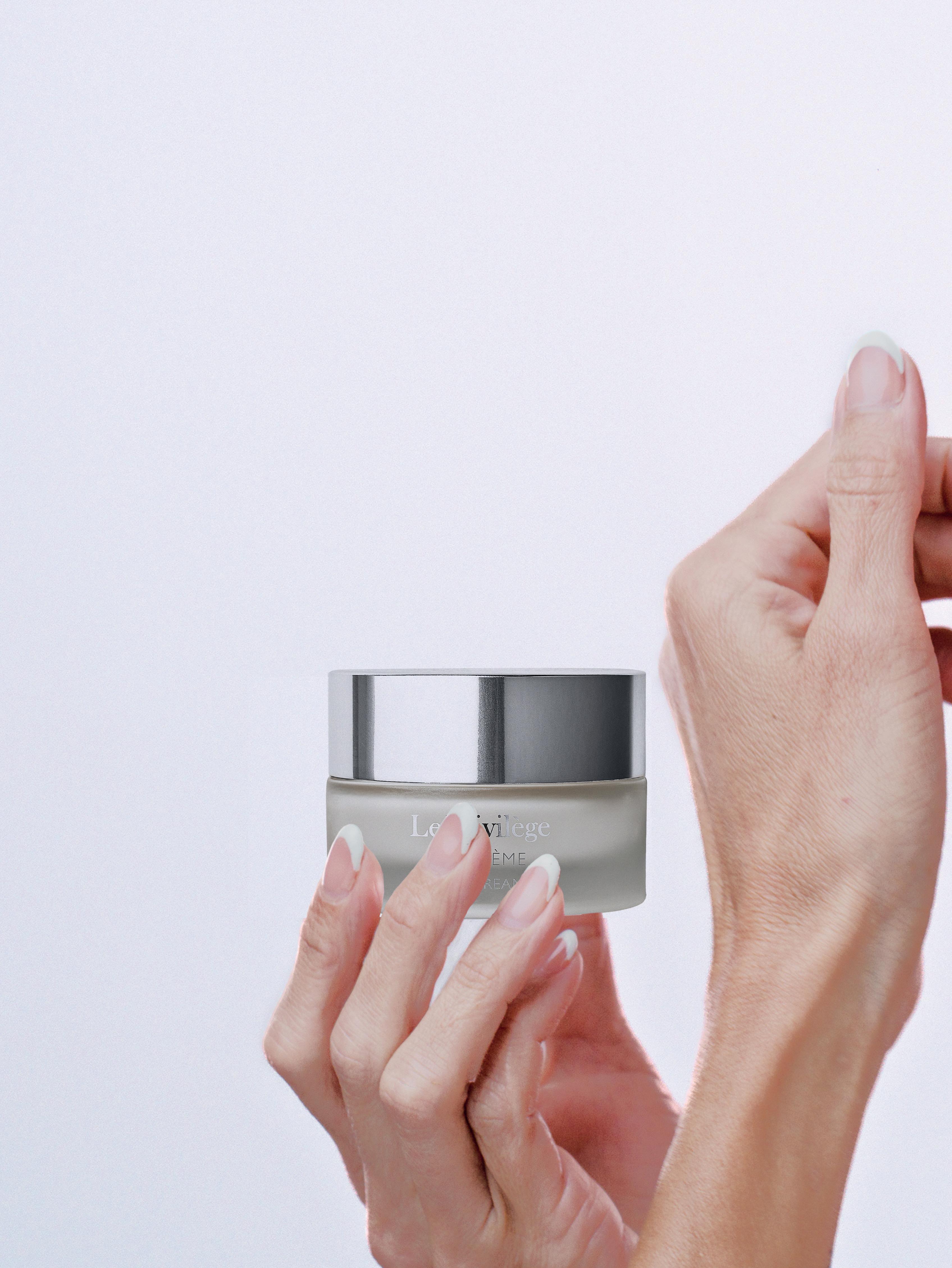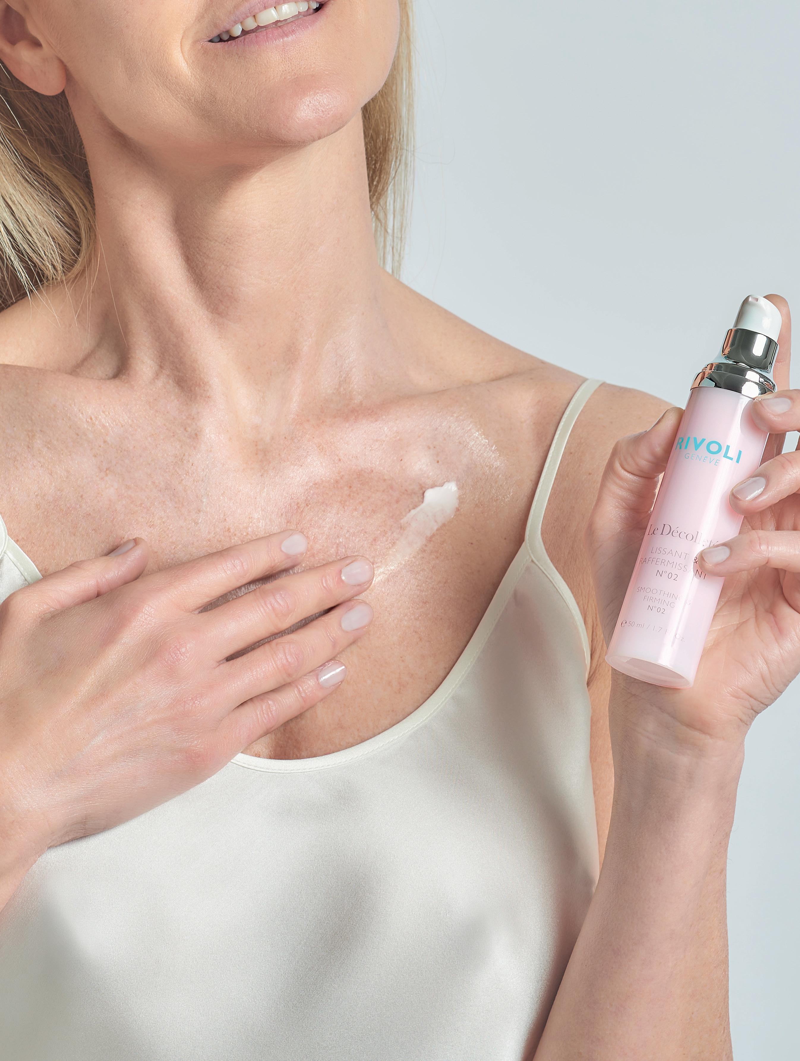 Mit La Crème RIVOLI Genève, die die Feuchtigkeit versiegelt, die Hautbarriere schützt und die Hauttextur verfeinert.
