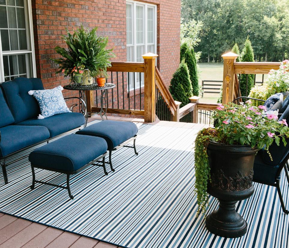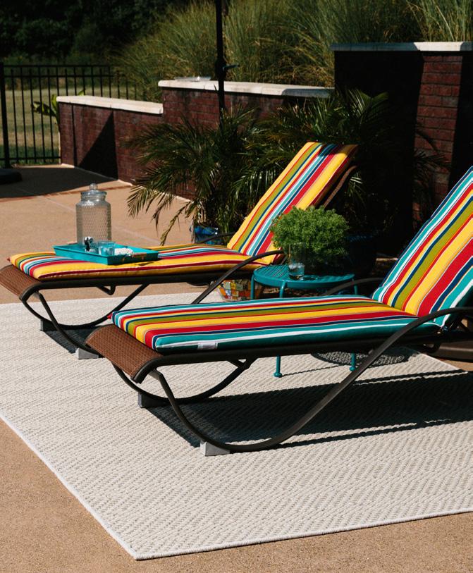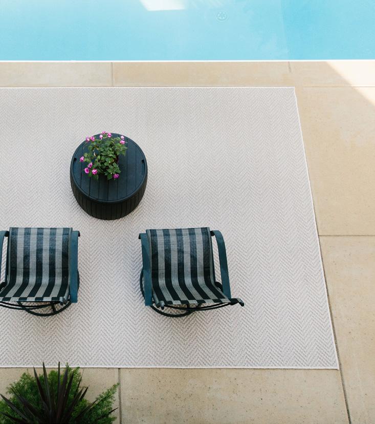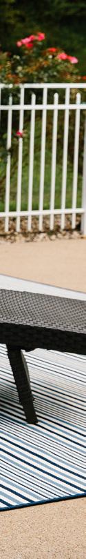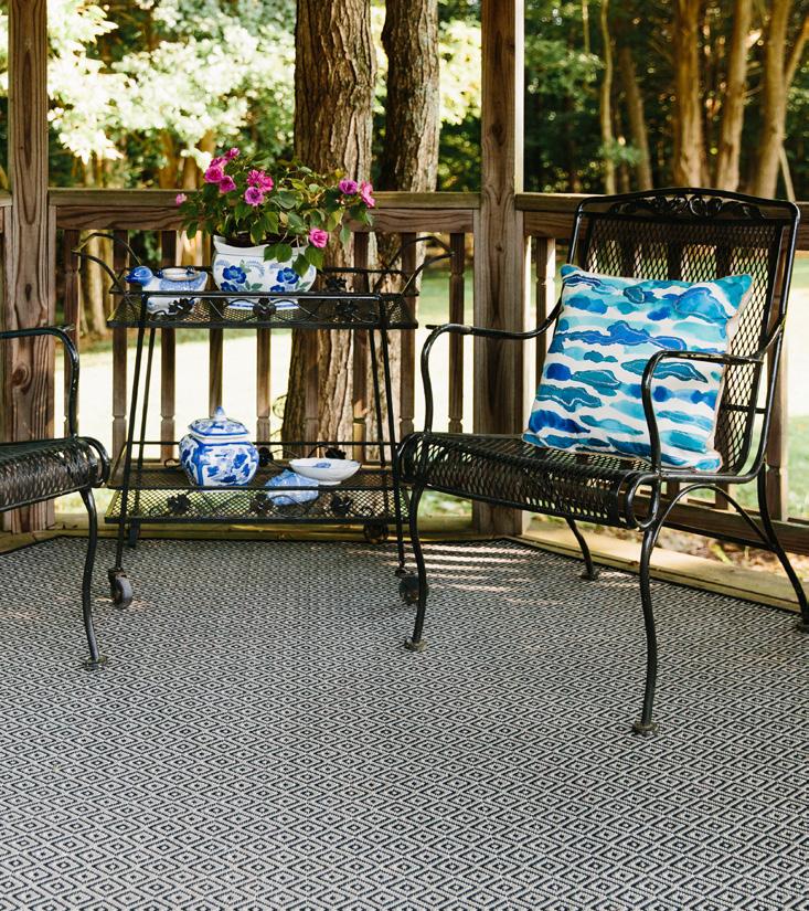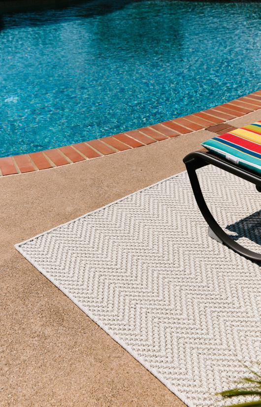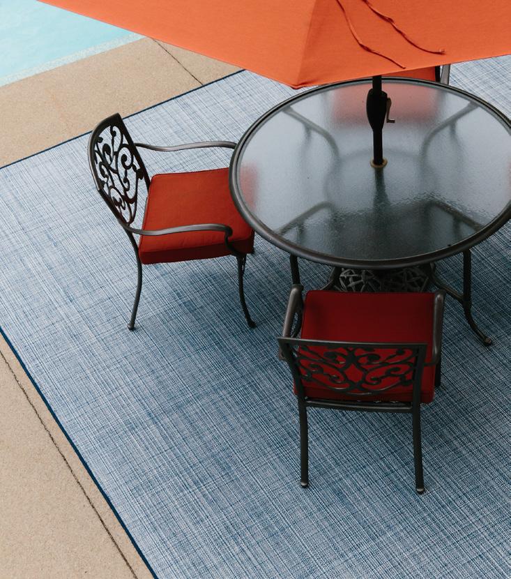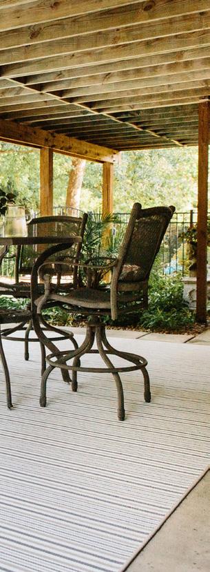 These versatile area rugs are perfect for both indoor and outdoor settings. They are a tribute to today’s need to venture outdoors while bringing the inside fashion to outdoors living. UV-treated and made to withstand any weather, these rug collections o er a unique yet exciting option in decorating sunrooms, patios or living rooms.