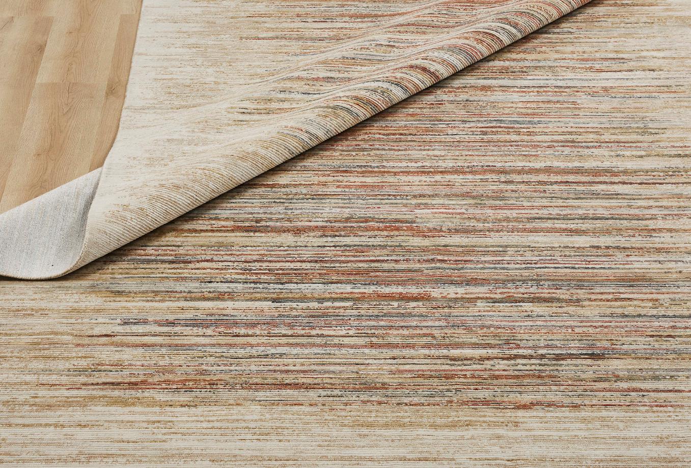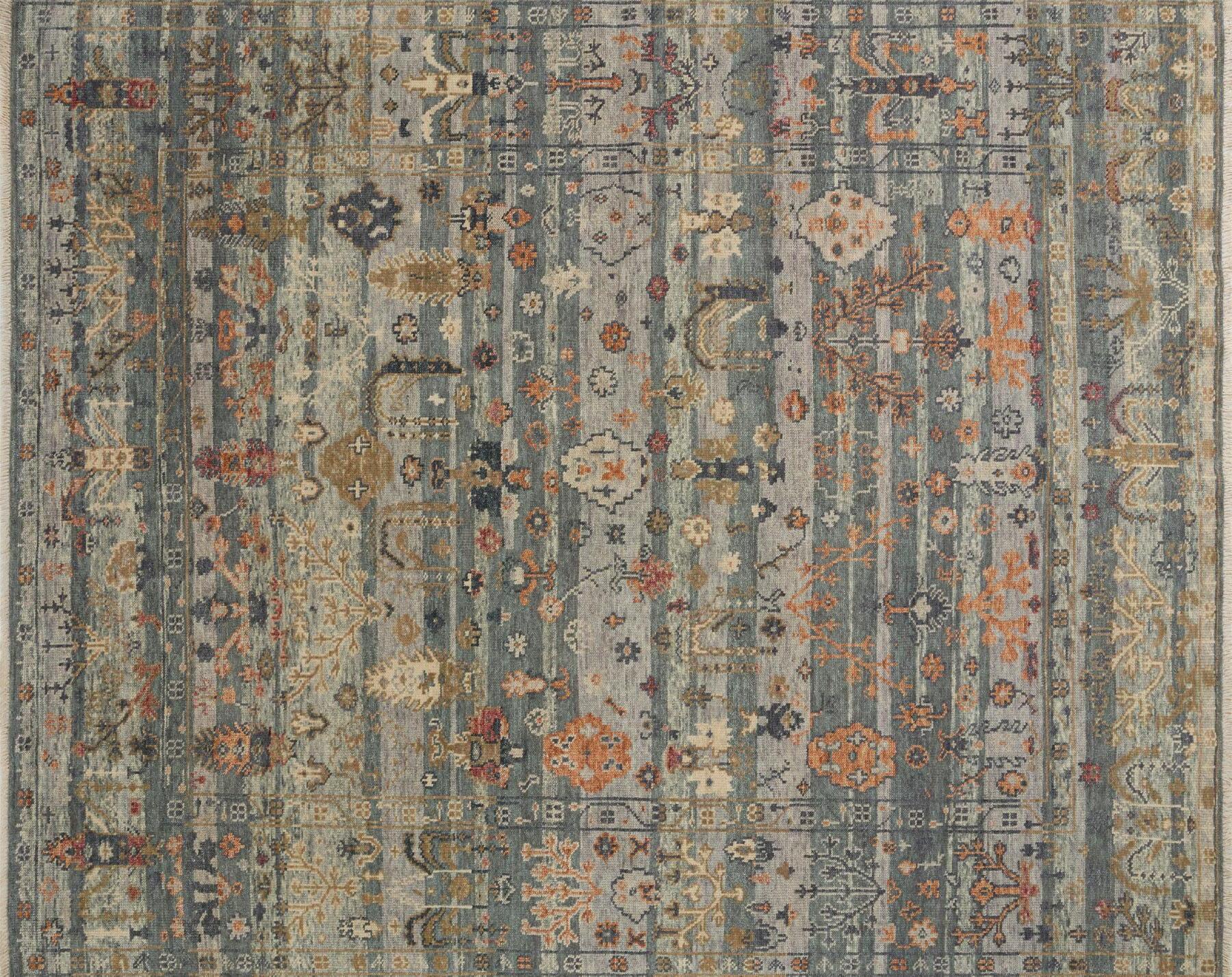 This hand-knotted collection features loose, freeform motifs that give the rug a sense of depth and romance. Its shade-shifting palette is based on the horizontal lines of varying tones you’d encounter in antique Persian rugs.