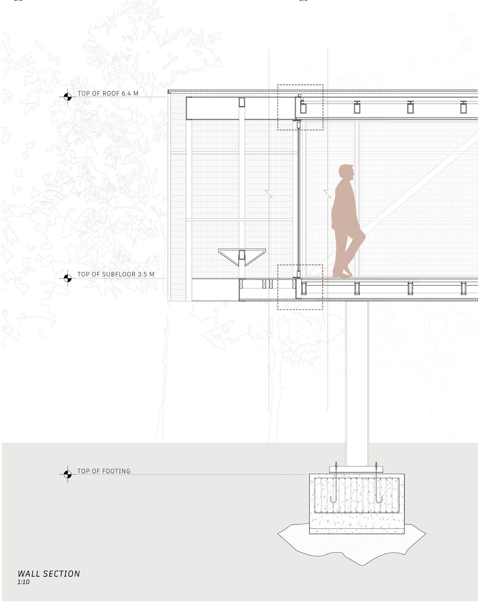 Located within a 90-minute drive from Melbourne, the Saint Andrew Beach House offers a minimalist escape designed by architect Sean Godsell. Situated along the beach, the harsh, dry, and salty environment inspired the use of pre-oxidized steel panels for the building facade. Oriented 15 degrees east-west to withstand strong winds, the architectural focus lies on structural analysis and wall assembly. Detailed studies emphasize how overhangs are supported and anchored to the ground, while wall sections highlight meticulously organized layers essential to the modern simplicity of the design.