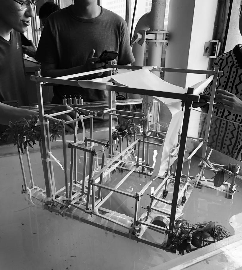 In this logic, my first two sketch models renovate the beam-column structural system by filling in the structural elements with repeated patterns. The purpose is to blur the visual impact that typically generating from sharpen edges in beam and column systems. In other words, the green house seeks for a shading pattern to produce a organic venue.