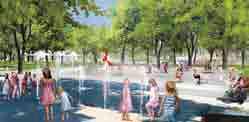 V centrální části parku, ve vazbě na kavárnu, je navržen polyfunkční parter, který tvoří „srdce“ parku, místo pro setkávání i kulturní akce. Prostor je doplněn vodními prvky, variabilním mobiliářem, altánem proti dešti.