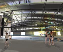 Richard Černý, Diana Hocková, Radim Kousal a Josef Panna: detail vítězného návrhu víceúčelové budovy Liberec Plaza Vizualizace: Ondřej Semerák