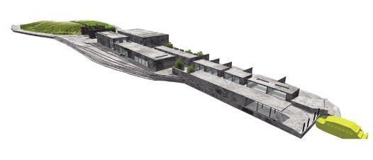 Předmět soutěže: Urbanisticko-architektonické řešení rekreačního areálu složeného z aquaparku, wellness centra a ubytování, umístěného v lázeňské zóně obce Kováčová.