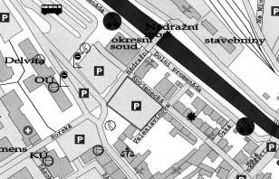 •část obytných souborů rozdělenou na dvě části osou směřující knádraží Českých drah,