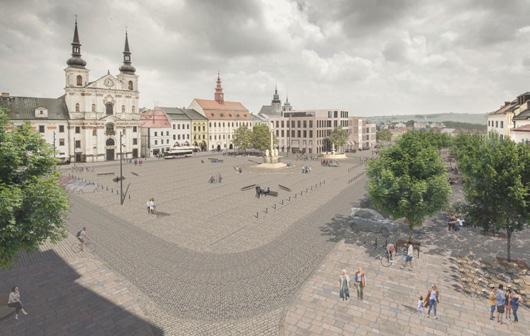 Kvalitní a komplexní řešení koncepce dlaž by v celém prostoru náměstí, diskutabilní je úplné zadláždění ploch určených k budoucí výstavbě na úkor zeleně. Urbanistické ře šení nově uvažované zástavby vycházející z historického kontextu je celkově uspoko jivé, ale v dílčích částech vyžaduje úpravy, např. v okolí Bauerova pomníku nezacho vává fungující prostorové uspořádání (malé náměstí). Porota považuje za nevhodné po jednání parteru na místě uvažované zástavby formou ocelových rámu, drobné architektury včetně parkoviště.