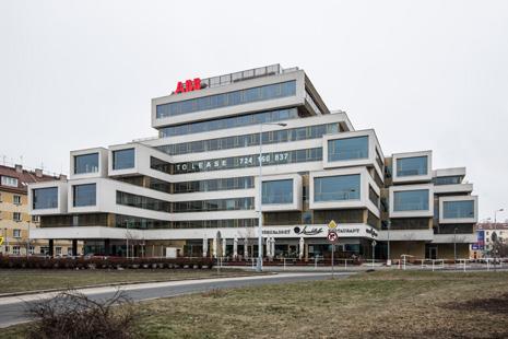 Administrativní budova Průmstav (Qubix), Štětkova ulice v Praze, 1976 (rekonstrukce podle návrhu ateliéru Ernst Hoffman pod vedením Martina Tröthana, 2012)