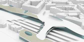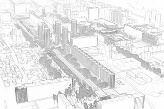 Stávající silniční a tramvajový nadjezd ve výšce 12 metrů nad terénem je zapojen do nové struktury a vytváří dvoupatrové město, kde se na spodních patrech odehrává výroba s napojením na městský silniční okruh a na vrchních administrativa a další funkce s přímým napojením na tramvaj. Dvoupatrovost struktury umožňuje lepší propojení Mezitratí s okolím díky lávkám v různých úrovních. Silniční a tramvajová estakáda získává parter.