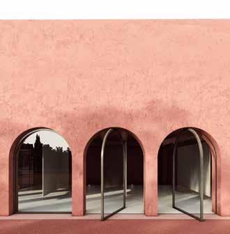Liniový park i parkovací dům drží materiálovou jednoduchost a všechny povrchy jsou provedeny v odstínech červené barvy v kombinaci se zámečnickými a klempířskými prvky v odstínech antracitové černé barvy. Hlavními materiály jsou zde červeně probarvovaný beton a barevný epoxid.