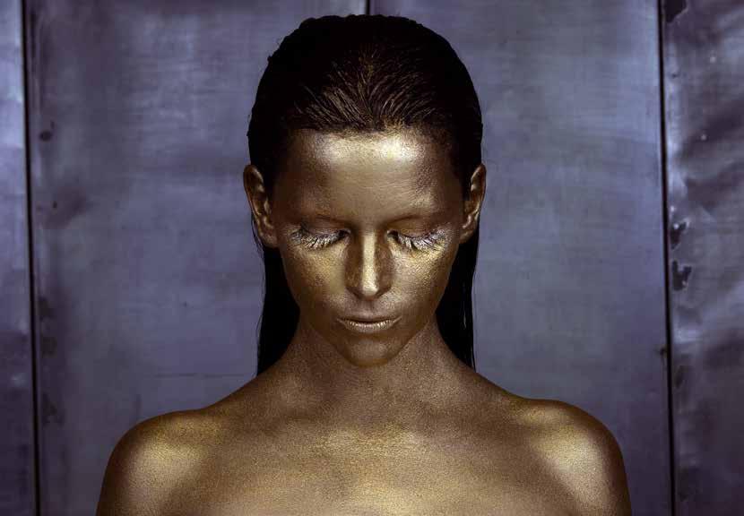 “I felt like he’s a gold person who is not recognized as a gold person. It didn’t feel right,” Man observed. Gold is a pure metal, untarnishable, and valuable – the traits Man found synonymous with human life. This inspired him, and his project then became a series of attempts at portraying the value and goodness in humanity by painting a diverse group of models in gold. The golden makeup used both unified them in their equality and amplified their uniqueness.