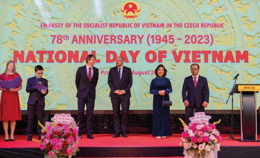 Text: M. Zisso; Photo: Lukáš Bíba the occasion of the 78th Anniversary of the National Day of Vietnam, H.E. Mr. Thai Xuan Dund and Mrs. Nguyen Thi Thien Nga hosted a special reception at Dong Do Restaurant in Sapa (Prague‘s Little Hanoi). Here are the selected extracts of Ambassador´s speeach at the festive event together with some photos illustrating the atmosphere. H.E. Mr. Thai Xuan Dund, Ambassador of Vietnam and his spouse on the stage with the guests of honor: Deputy Minister of Foreign Affairs H.E. Mr. Eduard Hulicius and Deputy Minister of Industry and Trade H.E. Mr. Edvard Kožušníkindependent and sovereign country, giving birth to the Democratic - Republic of Vietnam, and now the Socialist - Republic of Vietnam.