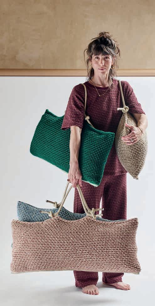 iota’s collections are dedicated to crochet knitting (knitting with one needle). This technique, originally from northern Europe, allows the creation of both planar and three-dimensional shapes by making knots in different spacing and thus represents endless configurations. Knitting is an international language, with global terms and signs, thus overcoming distance, culture and language difficulties, and permitting iota to create an equal identical starting point for their team. The women who knitted the elements for the collection needed no prior knowledge of knitting but were rather taught the technique in