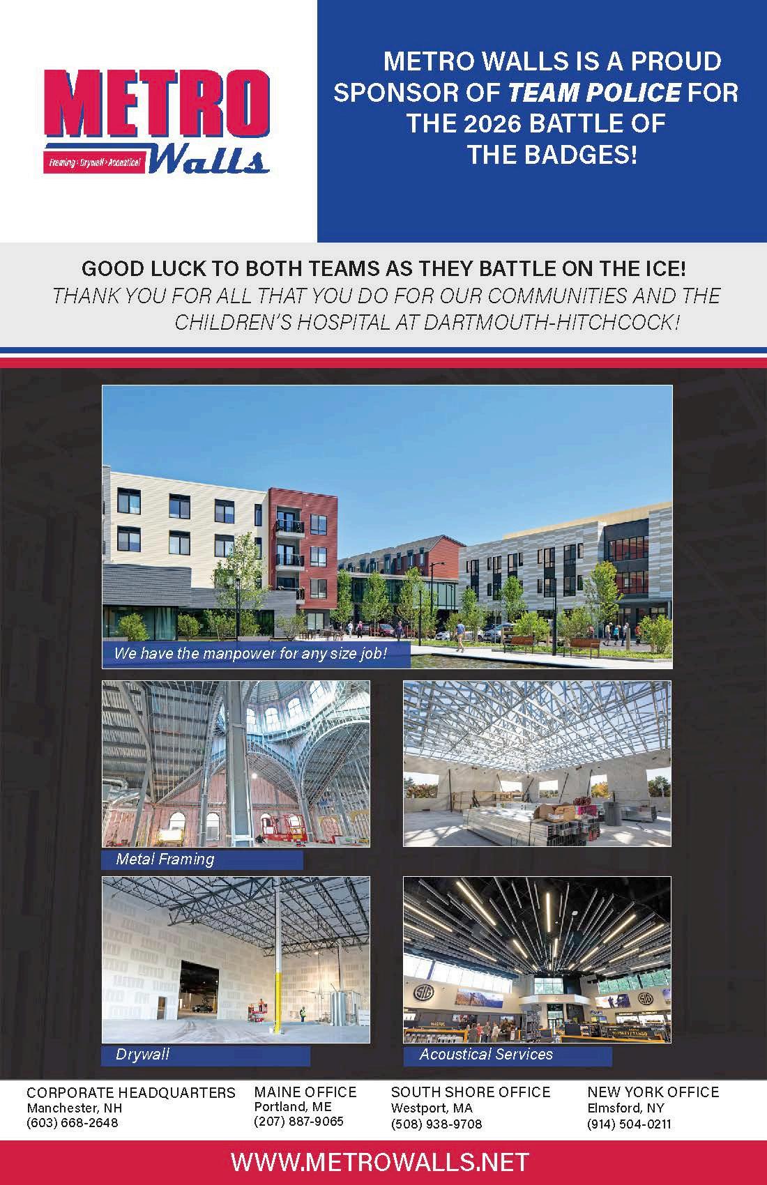 Welcome to the 2026 Battle of the Badges Hockey Championship. We are thrilled to once again fill the SNHU Arena as police officers and first responders from across the state of New Hampshire battle it out in one incredible competition. The proceeds from this annual battle of good vs good are used to help kids with critical services at Dartmouth Health Children’s including: support when they are in pediatric intensive care, management of chronic illnesses, and patient and family support services. Since the game’s inception in 2007, with your support, we have raised more than $3.5 million.