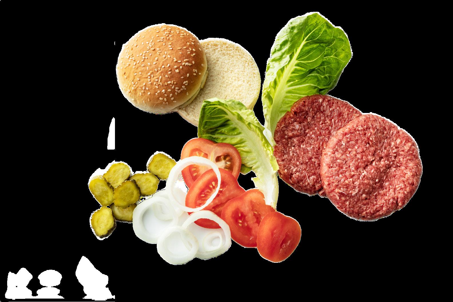 Lettuce, tomato, onion, pickles, cheese, etc.