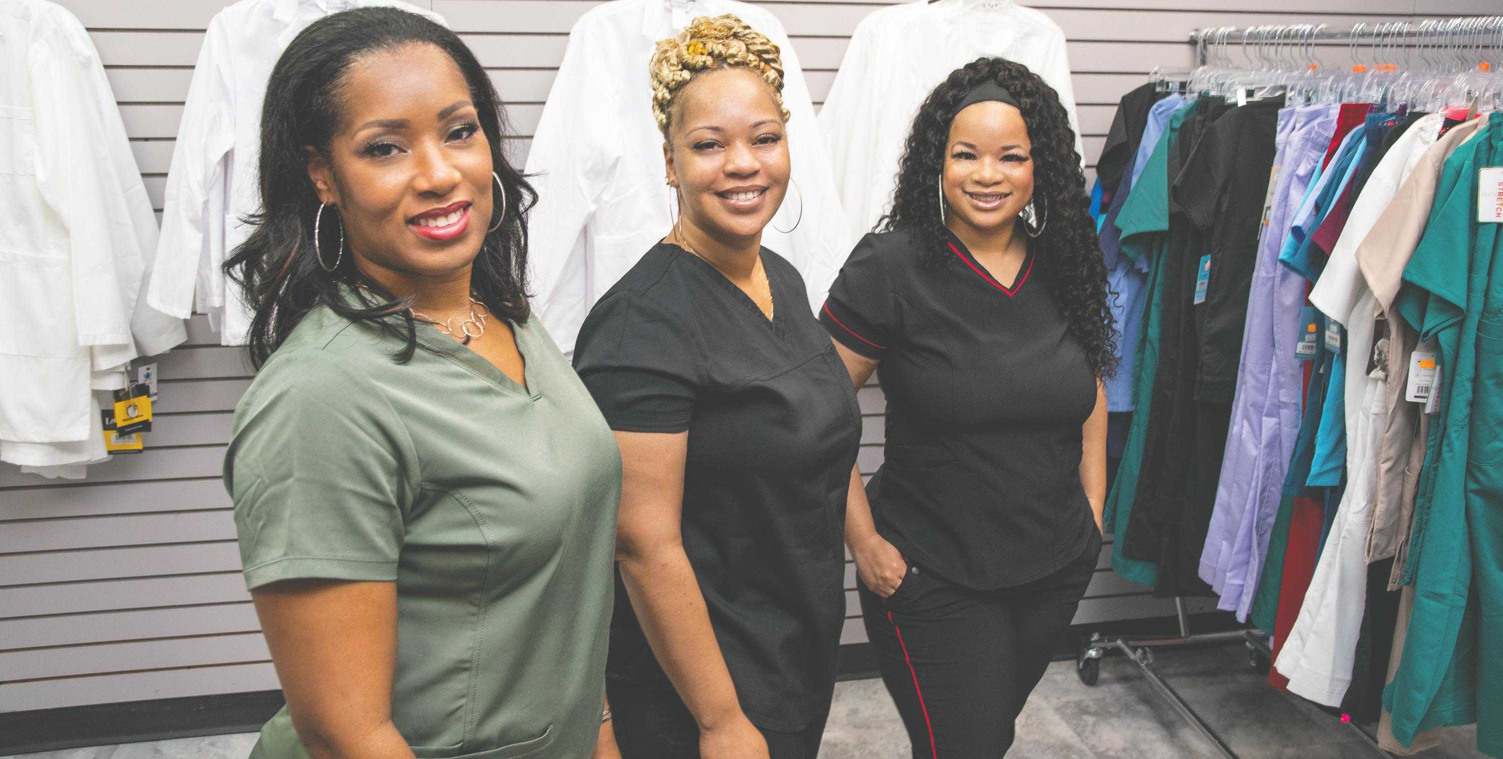 Where some believe the stigma that the Black woman cannot collaborate with other sisters, there is an exemplary enterprise right in the heart of our city combatting that stereotype. A group of like-minded and like-spirited female colleagues of color in the medical profession birthed a business in 2019 over a conversation in the hospital cafeteria. That simple chat, sharing dreams and goals over lunch, organically turned into a rewarding business partnership - Scrubs To The Rescue. Co-owners Tennille Johnson, Keosha Austin, and Natishia Holly, coming together with a passion and purpose to fundamentally change the trajectory of the medical apparel retail market, have leveraged a non-traditional shopping model that has proven to be ahead of the curve for a valuable and convenient experience for medical professionals. Through their varied backgrounds and skill sets that compliment each other, the coowners of Scrubs To The Rescue have set a trend and stellar example of how women working together can create success, being a shining example for other females and all entrepreneurs to follow.