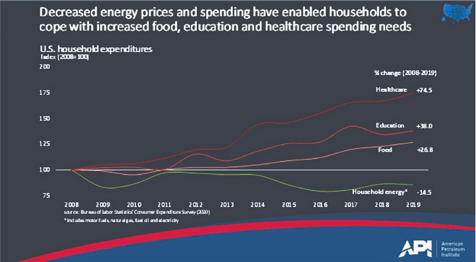 For more than a decade, expanded U.S. energy production helped lower energy costs, giving consumers more disposable income to afford other essentials like food, education and healthcare, which rose by 27% , 38% and 75% , respectively, according to the Bureau of Labor Statistics (BLS).