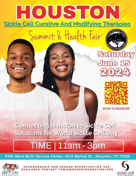 and register to attend the free and open to the public Houston Sickle Cell Summit in observance of World Sickle Cell Day, (tinyurl.com/as1scsummit)