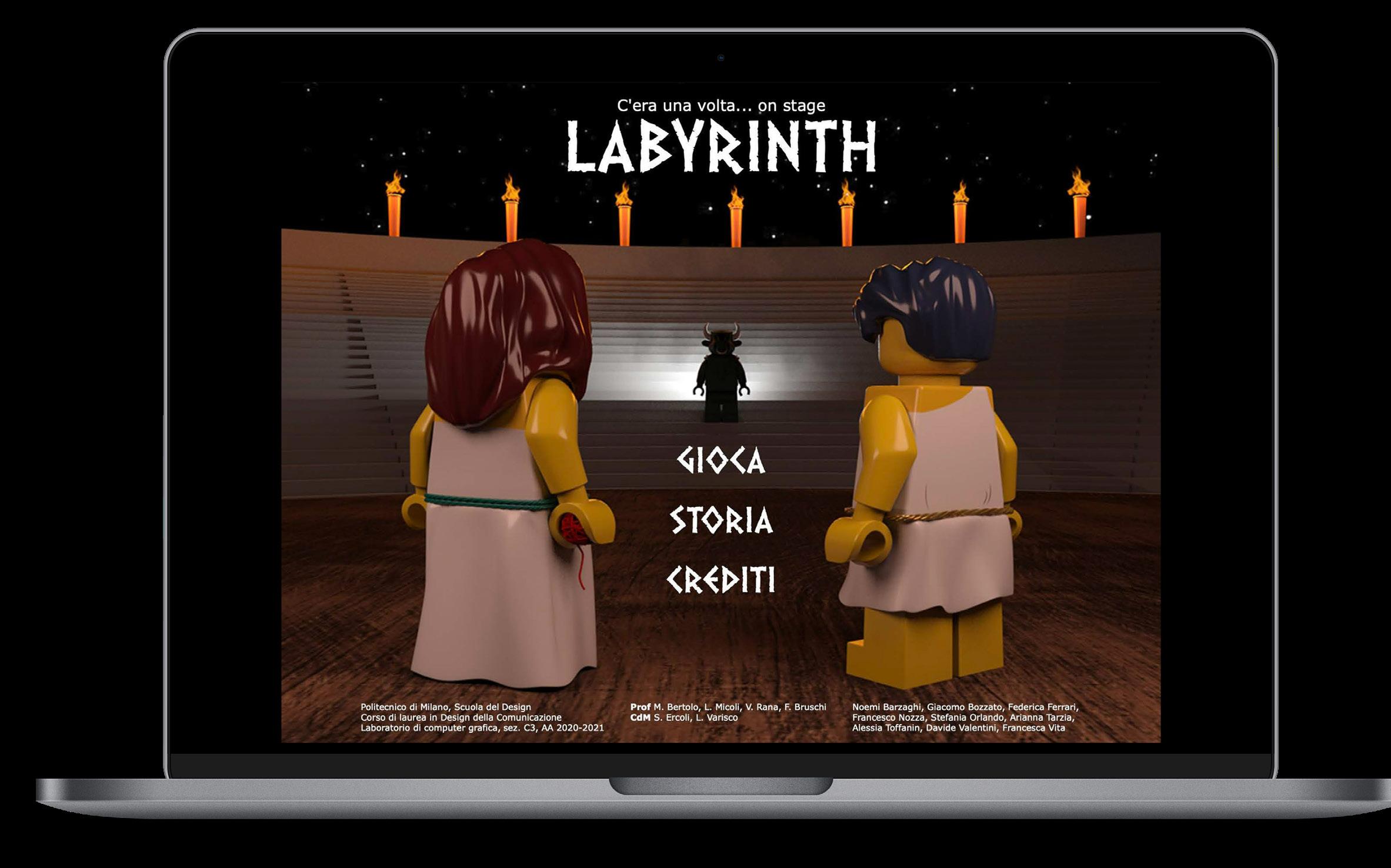 The objective of the project Once Upon a Time... on stage - Labyrinth was to design an interactive web app that brings the traditional myth of the Minotaur to the stage. The Studio required the design of a platform video game, accompanied by 3D renders based on Lego models, that were to enable a complete narrative.