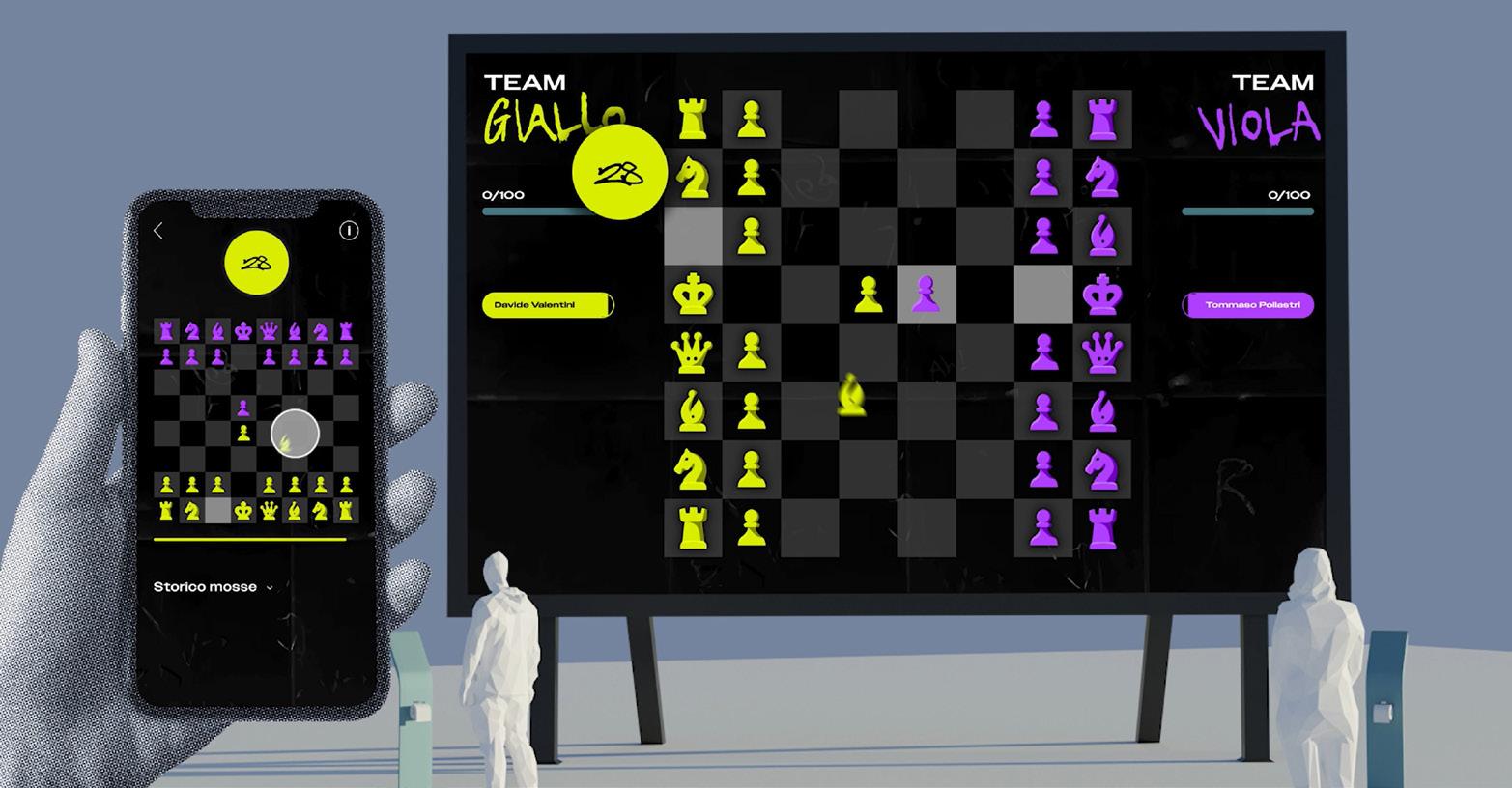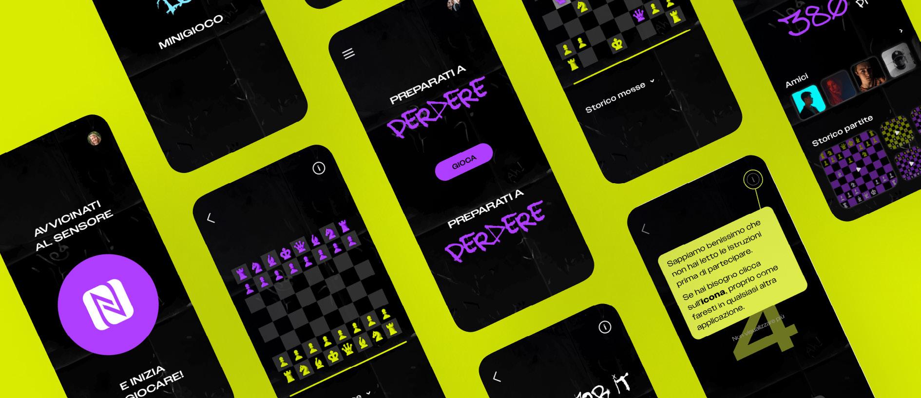 Primarily designed for young individuals and students, CHESSi offers an interactive variation of the chess game, brimming with new dynamics, played "relay-style" in public spaces on a monthly basis. The irreverent, fresh, and edgy tone of the brand is immediately evident from its name (pronounced "cessi" - toilets), further reinforced by a visual identity that blends the culture of social media, Twitch, and TikTok with street culture and graffiti.